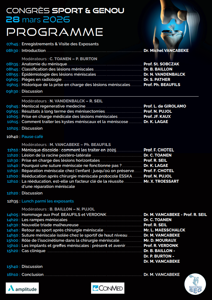 Lieu : UCL ORTHO Prof. O. Cornu – Salle A. Vincent route 671 niv -2 Cliniques Universitaires Saint-Luc, avenue Hippocrate 10, 1200 Bruxelles